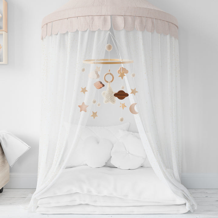 - Passer perfekt over en krybbe eller puslebord takket være det tidløse design.