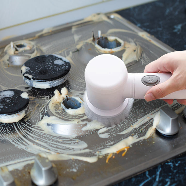 Den elektriske rengøringsbørste er ideel til brug i køkkener og badeværelser, hvor den let kan komme ind i hjørner og omkring armaturer. Brug den til at rengøre fliser, gryder og kogeplader med minimal indsats.