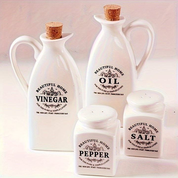 Keramisk Olie/Eddike/Salt/Peber Dispenser - Hvid, Keramik & Kork, Æstetisk & Praktisk