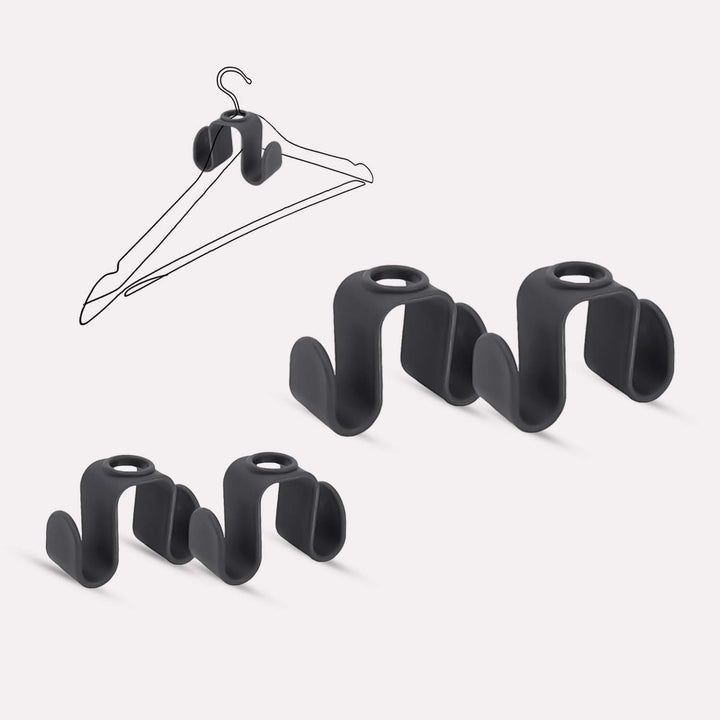 Disse kroge fra NordicLiving er den perfekte løsning til at maksimere pladsen i din garderobe. Fremstillet af robust, sort plast med en elegant mat finish, er de ideelle til at organisere tøj i små skabe eller opbevaringsenheder med begrænset plads. De er designet til at give mulighed for at hænge flere genstande på en enkelt bøjle, hvilket sparer værdifuld garderobeplads.