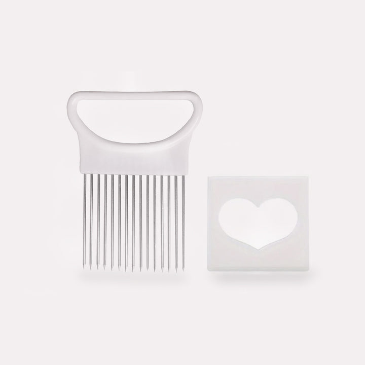 Velkommen til den ultimative løsning for præcis og sikker løgskæring! Denne løgskærerholder er designet til at revolutionere din madlavning med dens indviklede kombination af æstetik og funktionalitet. Med et moderne design, der kombinerer et komfortabelt hvidt håndtag og slidstærkt rustfrit stål, sikrer den nem skæring af løg og andre grøntsager, samtidig med at den beskytter dine fingre. Perfekt til både hjemmekokke og professionelle køkkener, så du kan opnå de fineste skiver uden besvær.