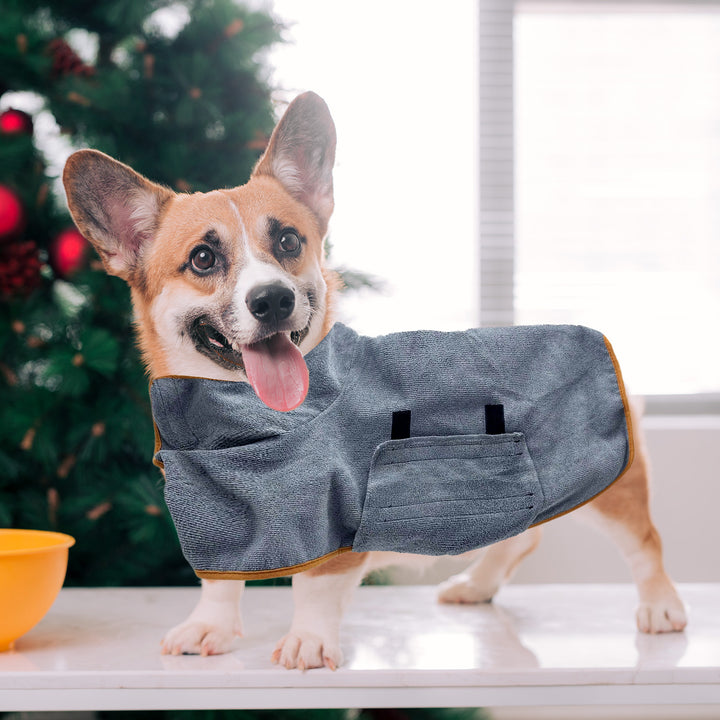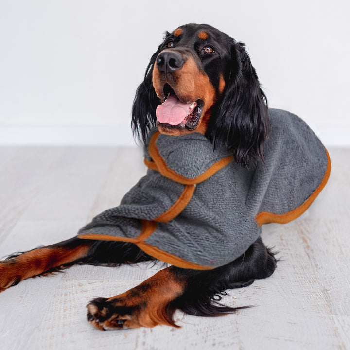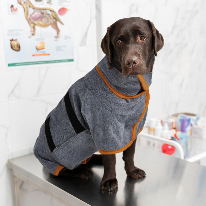 Mikrofiber Badekåbe til Hunde - Grå med Orange Kant, Størrelse XS-XL