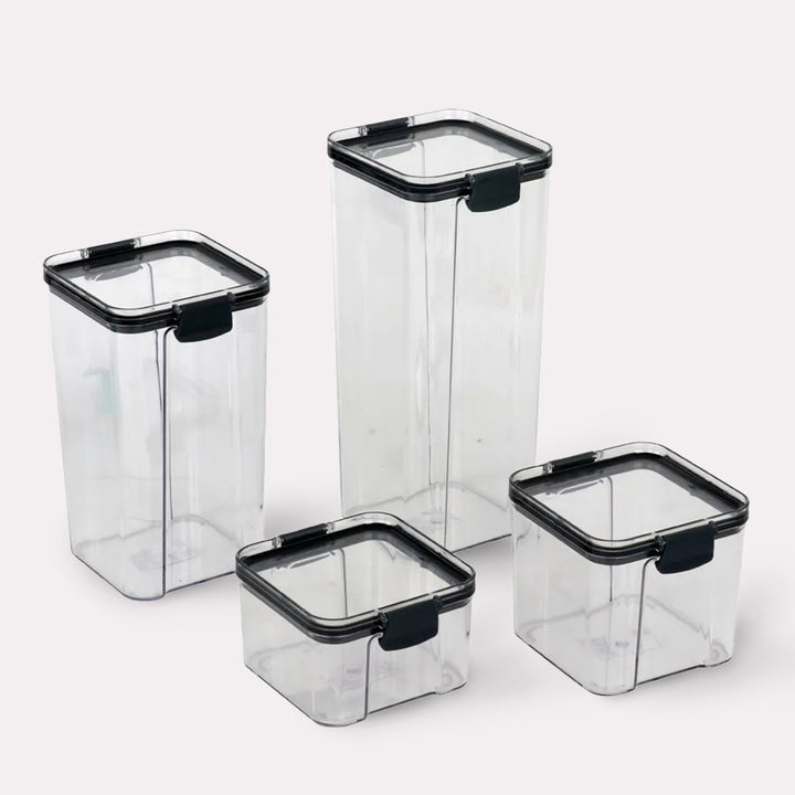 Opbevaringsbøtter Køkken - Gennemsigtig Plastik, Sort Låg, 460ml-1300ml Størrelser