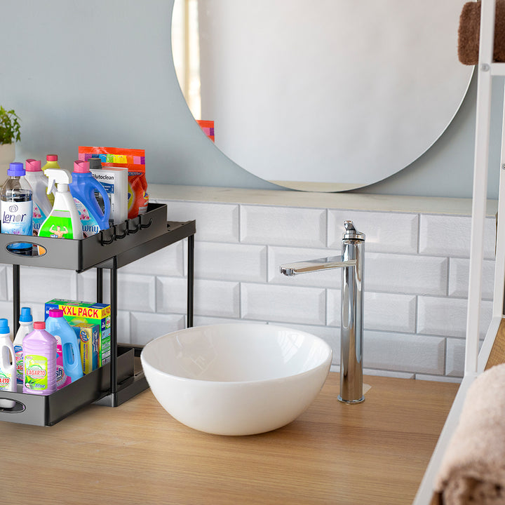 Opbevaringsløsning til Under Vask - Sort Metal, Justerbare Hylder