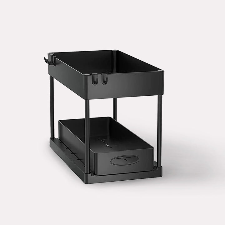 Opdag den ideelle opbevaringsløsning til dit hjem med denne avancerede enhed designet til at passe ind under vasken. Fremstillet i robust metal med en stilfuld sort finish, tilbyder den justerbare hylder, der sikrer optimal brug af plads og organisering. Perfekt til køkken, badeværelse eller kontor, hvor funktionalitet og moderne design er i centrum.
