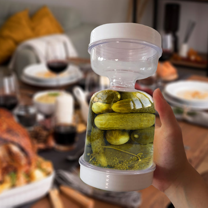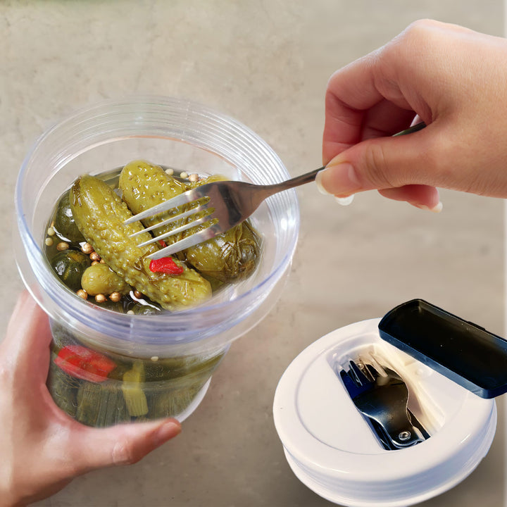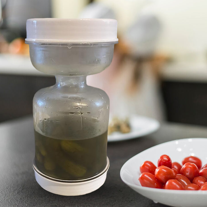 Pickle Glas - Moderne Hvid & Gul Plastfermenteringsglas med Gaffel