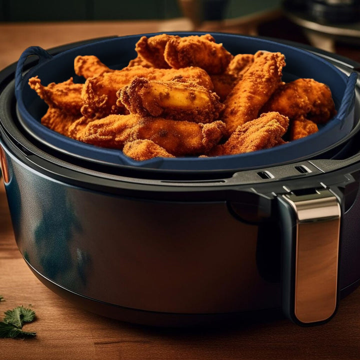 Silikoneform - Mørkeblå Rund Sammenklappelig til Airfryer, Fleksibel og Praktisk
