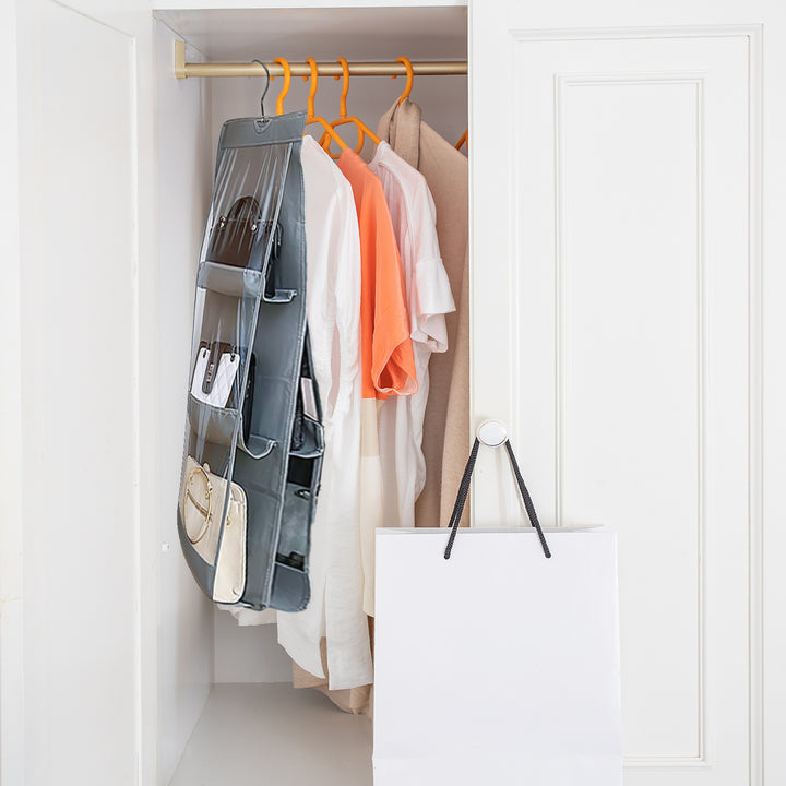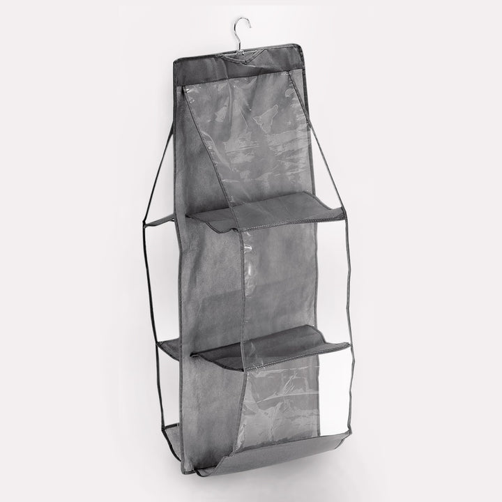 Brug denne taskeorganiser i dit garderobeskab for at holde dine tasker og tilbehør let tilgængelige og organiserede. Det er også ideelt til opbevaring af legetøj i børneværelset eller til småkontorartikler på hjemmekontoret.