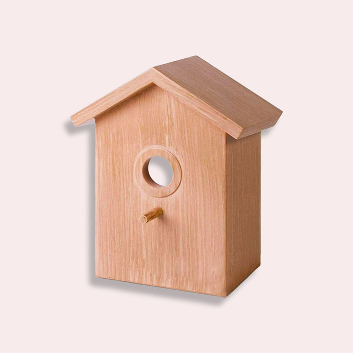 Udendørs fuglekasse i træ, naturlig dekorativ til haven, lys nuance