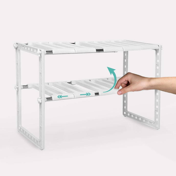 Gør dit hjem mere organiseret med denne smarte opbevaringsløsning under vasken. Produktet er designet til at maksimere plads og skabe orden med justerbare hylder, ideel til både badeværelse og køkken. Den er fremstillet af holdbart plast i en elegant hvid finish, der passer perfekt ind i moderne hjem. Denne alsidige hylde kan tilpasses til forskellige behov, fra opbevaring af rengøringsmidler til køkkenredskaber og børnenes legetøj.