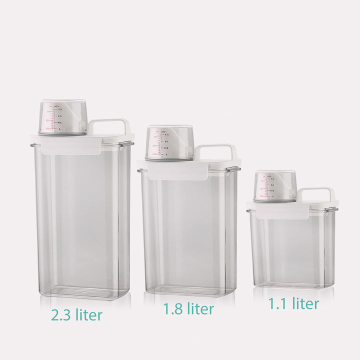 Vaskepulver Opbevaring – Klar, Hvide Låg, 1100 ML, 1800 ML, 2300 ML, Plastik